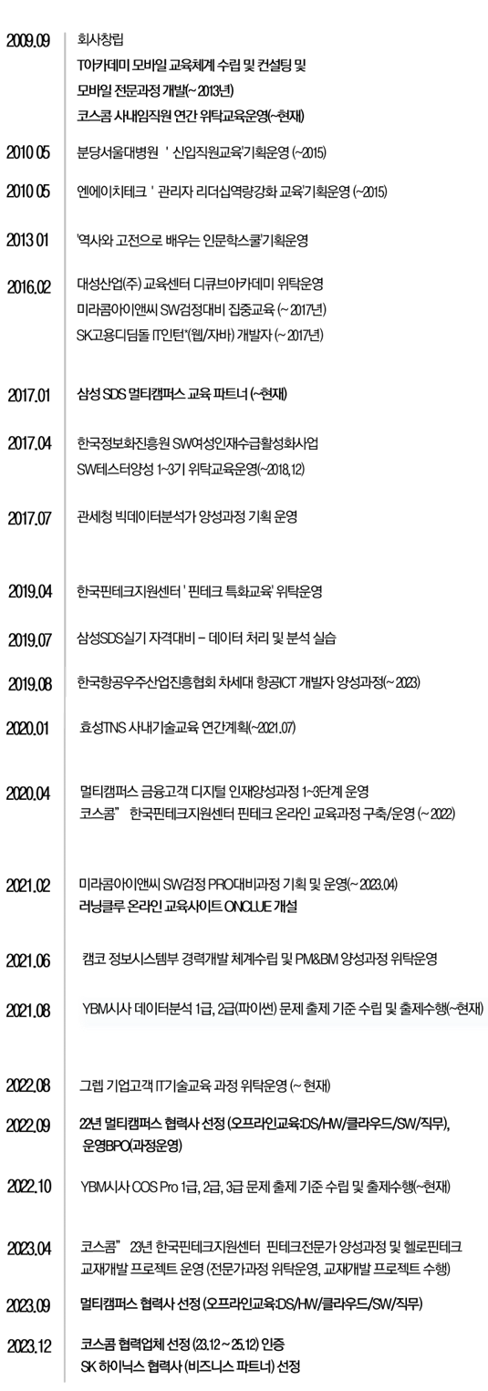 ▪ 2009 | T아카데미 교육체계 수립 컨설팅, 모바일 전문 교육과정 개발 (~2017)
